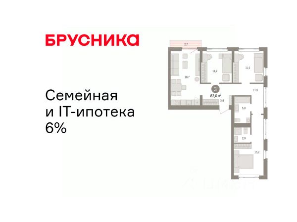 При звонке назовите оператору номер лота. 3-комнатная квартира в ипотеку в новостройке в Екатеринбурге.