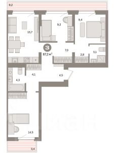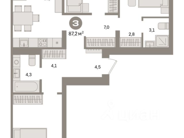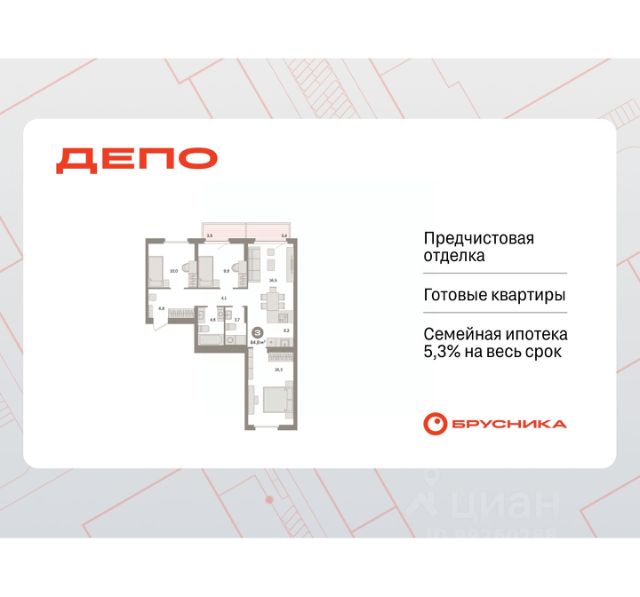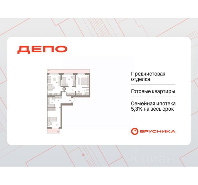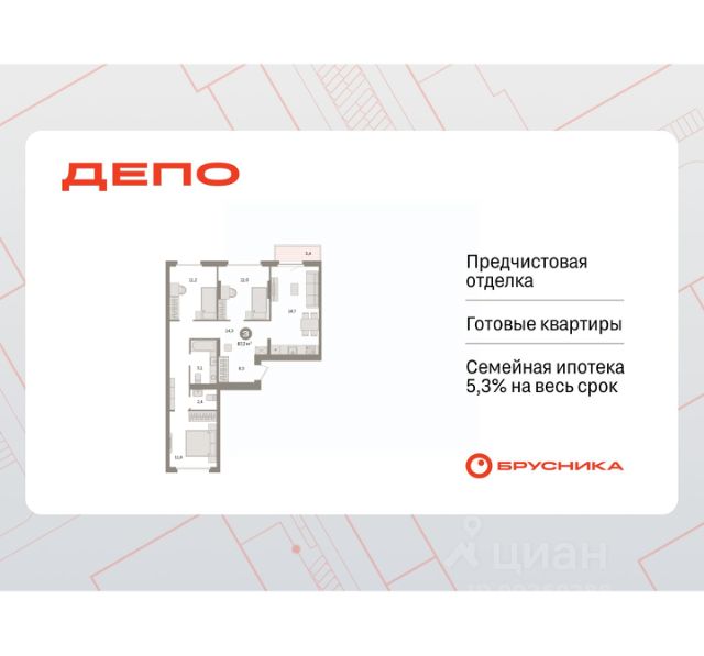 Продается 3-комн. квартира с предчистовой отделкой в ЖК "Квартал Траектория" на 3 этаже. Общая площадь: 87.5 кв.м., жилая: 41.5 кв.м., площадь просторной кухни-столовой: 18.7 кв.м. Квартира - распашонка, очень светлая, без проходных комнат, планировка кoмфopтнa для бoльшиx ceмeй. В квартире один балкон, два совмещенных санузла. Высота потолков 2.82 м. Дом монолитный, многоподъездный, переменной этажности, от 7 до 25 этажей. Квартира находится в 8-й секции высотой 7 этажей в корпусе 1-1. На этаже 3 квартиры. В подъезде 1 грузовой лифт. Начало строительства - 4 квартал 2025 года. Окончание строительства - 4 квартал 2027 года. Оформление сделки по договору долевого участия. Квартира с кухней-гостиной и тремя спальнями в квартале "Траектория". Особенности планировки: окна на две стороны, второй санузел, гардеробная, стартовая цена, вид во двор, разнесённые спальни, предчистовая отделка, мастер-спальня, балкон. квартиры в нашей базе: МНВ01-Ж8.3.2. Квартал "Траектория" строится в границах улиц Билимбаевской, Расточной, Монтажников и Маневровой Раньше здесь находился оборонный завод 5-ЦАРЗ, основанный в 1945 году. После войны он ремонтировал военную и грузовую технику — от "Виллисов" и "Студебекеров" до советских ЗИС-5 и ГАЗ-67. Сортировка — район с развитой инфраструктурой, обжитыми жилыми кварталами разных эпох и большим количеством парков. До центра Екатеринбурга — 20 минут на машине. Туда же можно отправиться на автобусе: ближайшая остановка общественного транспорта — в 4 минутах от "Траектории". Рядом с "Траекторией" расположены магазины, торговый центр, детские сады, школы, поликлиники и полезные сервисы, а также другой проект Брусники — квартал "Депо". Если хочется развлечений, можно отправиться в ТРЦ "Карнавал" и парк с аттракционами "Таганская слобода" — дорога туда займёт не более 10 минут на машине. Квартал "Траектория" — первый этап комплексного развития территории, которую раньше занимали производственные здания. На месте бывших цехов Брусника создаст дружелюбную среду и комфортное пешеходное пространство для всего района. Для озеленения квартала мы подобрали больше 60 видов растений: ольху, липу, клён, иву, грушу, вишню, сирень, барбарис, гортензию, смородину, ирис, декоративные травы. Они цветут в разное время года и постоянно меняют настроение двора. В "Траектории" мы предусмотрели несколько общественных пространств, открытых для всех горожан: встречающий сквер, лесопарк у храма и событийный сквер между домами. Когда захочется тишины и уединения, можно устроить прогулку во внутренних дворах: в них нет машин и посторонних, зато много зелени, света и мест для отдыха. Каждый двор в квартале "Траектория" — продолжение квартиры, только под открытым небом. Здесь можно прогуляться босиком по траве, устроить утреннюю йогу, почитать книгу в гамаке или отправить детей поиграть, не переживая за их безопасность. Мы закроем дворы от машин, чтобы создать безопасную среду для отдыха. Применим натуральные материалы в отделке ма Продается 3-комнатная квартира с отделкой от застройщика в районе Железнодорожный в городе Екатеринбург.
