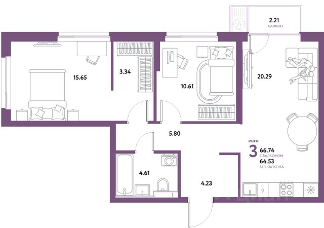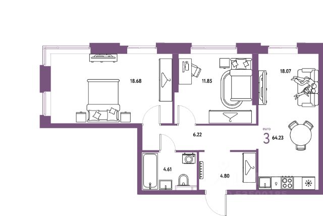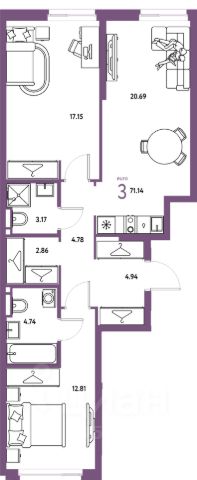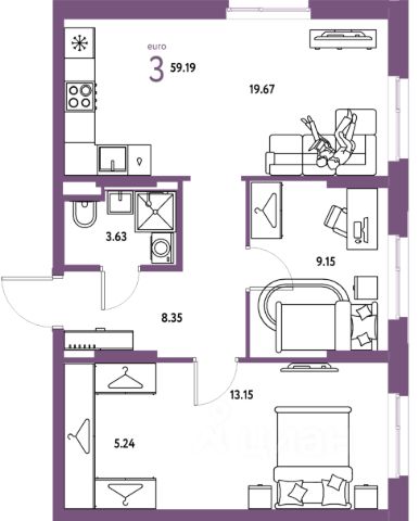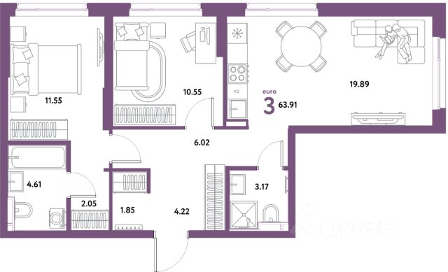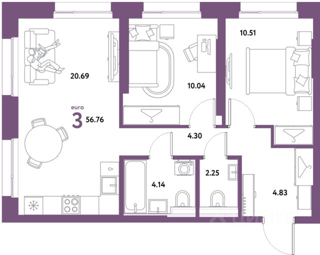 Продаётся 3-комнатная квартира в строящемся доме (Дом 3), срок сдачи: IV-кв. 2028, общей площадью 54.84 кв.м., на 3 этаже. Новый жилой комплекс "Уральский сад" от застройщика "ГК Страна Девелопмент" расположен по адресу: г. Екатеринбург, посёлок Совхозный, Комбинатская улица.