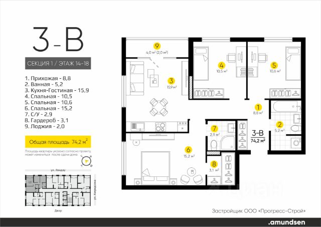 Успейте оформить бронирование по акционной цене! Период акции ограничен! Стоимость квартиры указана со скидкой, ваша экономия составит 410,000 RUB. По всем вопросам звоните в офис продаж, мы вам все подробно расскажем! Квартира с кухней-гостиной и тремя спальнями в Бруснике в Академическом. Особенности планировки: окна на две стороны, второй санузел, разнесённые спальни, предчистовая отделка, балкон, терраса на крыше. квартиры в нашей базе: АКД05-Ж6.8.4. Квартал "Брусника в Академическом" расположен в границах улиц Ландау — Новая. Сегодня Академический — молодой, стремительно развивающийся район, обеспеченный всей необходимой инфраструктурой. С центром его связывают две магистральные улицы — Вильгельма де Геннина и Амундсена. Последняя в перспективе соединится с ЕКАДом, что позволит жителям быстрее выезжать из города. Согласно утвержденному проекту планировки территории в пешеходной доступности от квартала Брусники появятся две школы, рассчитанные на 1700 мест, и шесть детских садов. Рядом со строящимися домами расположены две крупные зелёные зоны — Юго-Западный лесопарк и Преображенский парк. В школах раиона совместно с учеными УрО РАН будет реализован проект "Малая академия наук", предпогагающий регулярные экскурсии в отраслевые институты и лаборатории, участие в научных конференциях и мастер-классах. Также в Академическом уже построены, теннисная академия и дворец дзюдо, крупные ТРЦ "Краснолесье" и ТРЦ "Академический", гипермаркет "Лента", в планах — организация ИT-кластера и новых филиалов НИИ. Камерные дворы квартала закрыты от машин. По нашим стандартам 70% их территории покрывает зелень. Деревья, кустарники и травы подобраны таким образом, чтобы в каждый сезон двор оставался красивым и имел свой цвет. Каждый двор разделён на зоны. В одной расположены детские площадки, в другой — места для спорта и тихого отдыха взрослых. Особенность ландшафта дворов — дождевые сады, снижающие нагрузку на ливневую канализацию. Они впитывают сток с крыш и тротуаров, фильтруют его в специально подобранном субстрате и отправляют в пруд. #zS0t1D