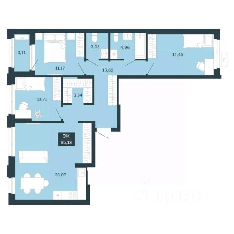 Квартира находится в ЖК "Бодровский" от федерального застройщика "Паритет Девелопмент". Это жилой комплекс комфорт-класса с современной архитектурой, расположенный в Екатеринбурге в районе улиц Патриса Лумумбы и 2-й Новосибирской. Добраться от него до центра города можно всего за 25 минут, дорога до ЕКАДа займет 12 минут. В окружении жилого комплекса есть шесть детских садов, пять школ, три больших парка, пять спорткомплексов, в том числе курортный комплекс Уктус. Квартал состоит из двух секций переменной этажности (от 14 до 24 этажей) и подземного паркинга с кладовыми, к которым можно будет спуститься на лифте. На первых этажах предусмотрены коммерческие помещения: жители смогут сделать маникюр, воспользоваться услугами ателье, выпить кофе с круассаном, не покидая своего района. Ввод в эксплуатацию в III кв. 2027 года. Территория комплекса огорожена от машин и посторонних людей. Озеленение с многолетними растениями и деревьями создает ощущение близости к природе. Двор наполнен всем необходимым: песочницы и качели для самых маленьких, интерактивная башня для детей постарше, воркаут-зона и места для отдыха. На всей территории реализована безбарьерная среда. В парадных выполнен авторский ремонт. За счет панорамного остекления и 4-метровых потолков там всегда много естественного света. Предусмотрены колясочные с местами для хранения спортинвентаря и креплениями для велосипедов. В проекте представлены студии, классические одно- и двухкомнатные варианты, а также двух-, трех- и четырехкомнатные квартиры в евроформате площадью от 25,32 до 76,65. Все планировки — функциональные и подходящие новоселам как с детьми, так и без них. Есть варианты с лоджиями, где можно организовать дополнительное пространство для отдыха, спорта или работы, а еще квартиры с мастер-спальней, гардеробной, двумя санузлами. В каждой предусмотрена вытяжная вентиляция с естественным побуждением, счетчики с телеметрией и корзины для кондиционеров. Характеристики квартиры: этаж - 9 количество комнат - 3 номер помещения - 73 площадь квартиры - 51,45 кв.м Чтобы сэкономить время и деньги, можно приобрести квартиру сразу с ремонтом от застройщика. На выбор 3 конфигурации: базовый, с кухонным гарнитуром, с кухонным гарнитуром и другой мебелью - в светлом и темном оттенках. Ремонт можно включить в ипотеку. Продам 3-комнатную квартиру в новостройке в районе Чкаловский в городе Екатеринбург.