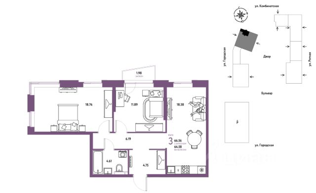 Новая квартира в ЖК "Уральский сад" напрямую от федерального застройщика "Страна Девелопмент". 3комнатная квартира площадью 68,29кв. м. на 19 этаже жилого комплекса "Уральский сад". Жилой комплекс "Уральский сад" — это новый проект ревитализации территории в Екатеринбурге. Основная идея проекта создать комьюнити людей, которые наполняют свою жизнь необходимыми ресурсами и энергией, стремятся созидать, вдохновлять и развивать. 17 жилых домов переменной этажности — это "место силы" для жителей, соединенное с комфортом и умными технологиями. Преимущества Территория проекта будет условно разделена на 3 зоны: внешнее окружение, общественный бульвар и закрытые дворы. Чтобы создать дополнительный зелёный буффер на общественных пространствах мы высадим полноразмерные деревья. Особое внимание мы уделили входным зонам с парадными — каждая из них имеет свой уникальный дизайн, гармонирующий с внутридворовым пространством. Разноуровневые террасы, французские балконы и панорамное угловое остекление — особенность проекта. Архитектурная подсветка акцентно выделяет квартал в локации. Отделка Квартиры сдаются с предчистовой отделкой: произведена разводка электричества и отопления, выполнена стяжка пола, стены выровнены "под маяк", установлены розетки, выключатели и радиаторы. Дизайнерская отделка При покупке квартиры в ЖК "Уральски сад" можно включить стоимость ремонта в ипотеку. Пять вариантов на выбор: хлопковая нить, серый шторм, белый камень, шалфей, голубой вереск. Способы покупки Сотрудники "Страна Девелопмент" будут сопровождать вас на каждом этапе сделки, помогут получить одобрение по ипотеке или снизить ежемесячный платеж. - ипотека - рассрочка - с использованием материнского капитала -100% оплата наличными т от застройщика: 5 вариантов на выбор. Закрытый двор с площадками и зонами отдыха: мост-акведук, тренажёры, лабиринты, гамаки и шезлонги. ОТДЕЛКА Базовая отделка или готовый ремонт от застройщика. В базовой отделке все черновые работы выполнены, подведены коммуникации, стены оштукатурены под маяк. В ремонт от застройщика входит 5 вариантов отделки, уже включено всё необходимое: от сантехники до кондиционера. СПОСОБЫ ПОКУПКИ Сотрудники "Страны Девелопмент" будут сопровождать вас на каждом этапе сделки, помогут получить одобрение по ипотеке или снизить ежемесячный платеж. ипотека материнский капитал 100% оплата наличными рассрочка обмен — это выкуп вашей старой квартиры и зачисление полученных денежных средств в счет стоимости новой квартиры или в качестве первоначального взноса по ипотеке.