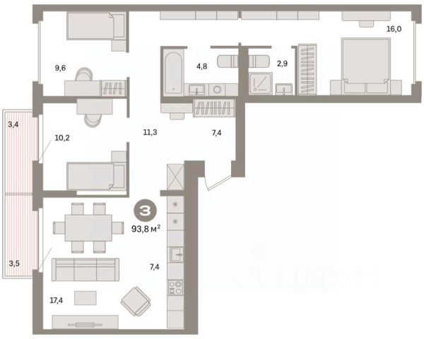 Квартира с кухней-гостиной и тремя спальнями в квартале "Депо". Особенности планировки: второй санузел, окно в коридоре, гардеробная, вид во двор, лоджия, разнесённые спальни, предчистовая отделка, постирочная. квартиры в нашей базе: ДЕП07-Ж1.12.7. Квартал "Депо" расположен в активно развивающейся части Сортировки, на месте, где раньше был завод "Электротранс". Преимущества Сортировки — развитая инфраструктура. В пешей доступности — супермаркеты, остановки городского транспорта, поликлиники, детские сады, школы, гимназии, торговые центры, автоцентры, рынок с большим и доступным по стоимости выбором товаров, парк РЖД и парк с аттракционами Таганская Слобода. Квартал "Депо" расположен в границах улиц Пехотинцев — Таватуйская — Сортировочная — Новая (проектируется). Благоустройство квартала основано на трёх принципах. Первый — особое внимание к воде. Архитекторы Брусники создадут внутри застройки систему дождевых садов, которые будут фильтровать сток (в том числе с крыш зданий) и снижать нагрузку на ливневую канализацию . Второй принцип — разнообразие. Мы высадим на улицах ивы, липы, яблони разных сортов, спиреи, лапчатку и дерен, а во дворах — березы, липы, черёмухи, пузыреплодник, кизильник и манчжурский орех, который в Екатеринбурге почти не представлен. Третий принцип — зонирование. Центральный бульвар мы насытим площадками для игр детей и спокойного отдыха взрослых, на площади перед детским садом расположим окруженные деревьями плэйхабы, летние веранды кафе, открытое пространство с запоминающимся артом. #Z5CTg1