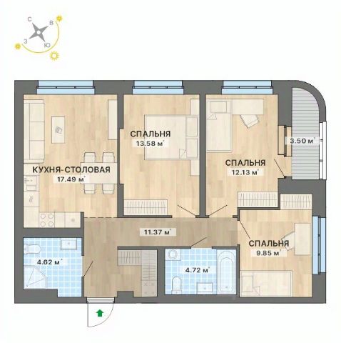 Жилой квартал "К100" на Космонавтов, 100 будет состоять из трех монолитно-кирпичных домов, объединенных общим двором. Застройщик компания "Практика". Планировки начинаются от 44,8 м² и доходят до 159,5 м². На каждом этаже располагается от восьми квартир классического и евроформата от двух до пяти комнат. Застройщик предлагает два вида отделки: white box и чистовую. Есть возможность перепланировки. Двор с ландшафтным озеленением разделен на три зоны. Для детей игровые площадки с меловыми досками и уличными шахматами, для взрослых лаунж-зона с креслами и столиками для отдыха, для спортсменов воркаут-площадка. На первом этаже лобби-клуб с игровыми комнатами, залом для йоги, коворкингом и мини-кинотеатром, колясочные и велосипедные помещения. Для автомобилистов предусмотрены гостевые места и подземный паркинг с доступом на лифте. На всей территории жилого комплекса установят видеонаблюдение. В доме будет работать консьерж-сервис в режиме 24/7. Дополнительные услуги включают клининг, выгул домашних животных, доставку еды из ресторанов и вызов такси. Также предусмотрена система "Умный дом". Рядом с жилым комплексом находятся сосновый бор, школы, детские сады, медицинские учреждения, торговые центры и супермаркеты, остановки общественного транспорта и станция метро. В шаговой доступности от дома откроется новый корпус уникальной гимназии "Арт-Этюд" — многопрофильного центра общего и художественного образования для детей от 3 до 18 лет. Строительство первой очереди жилого квартала "К100" на Космонавтов, 100 завершится в четвертом квартале 2026 года. 3-комнатная квартира с отделкой в районе Орджоникидзевский в городе Екатеринбург.