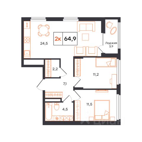 Продаётся 2-комнатная квартира в строящемся доме (ПК 19), срок сдачи: II-кв. 2028, общей площадью 43.06 кв.м., на 5 этаже. Расположение, транспортная доступность