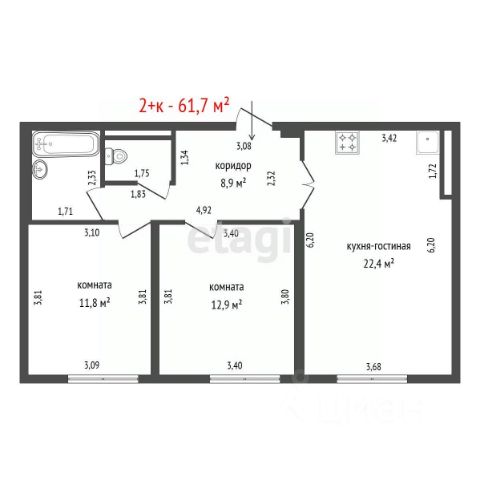 • ✓ В базе Циан 1 3-комнатных квартир в пятиэтажных домах на улице Гагарина в поселке городского типа Рефтинский