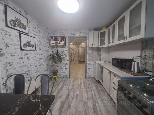 Кухня: кухонный гарнитур со всей встраиваемой техникой: посудомоечная машина, варочная поверхность, духовая печь, холодильник, микроволновая печь.