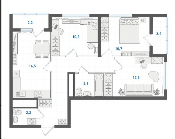 Продаётся квартира площадью 71.79 м2 в жилом комплексе "Эхо леса". Квартира находится на 3 этаже, жилая площадь квартиры 31.27 м2, площадь просторной кухни — 19.03 м2. Среди особенностей планировки — изолированные комнаты с окнами на одну сторону, 1 совмещённый санузел. Срок сдачи — I кв. 2028 Жилой комплекс "Эхо леса" — это: - дом в эко-стиле - двор с выходом в лесопарк - лаконичная архитектура - развитая инфраструктура вокруг квартала Инфраструктура В окружении проекта — вся необходимая инфраструктура: детские сады, школы, спортивный комплекс, продуктовые магазины, аптеки, кофейни, рестораны и салоны красоты. Благоустройство Концепция двора-парка продолжает тему леса. Ландшафт с продуманным всесезонным озеленением дополняют акценты: сухой ручей из камней, столы и навесы из натурального дерева, эко-тропы, фонтан и променад. Для взрослых предусмотрены пешеходные и велодорожки, для детей — игровые площадки для разных возрастов. Архитектура Переменная высота секций создаёт выразительный архитектурный облик. На фасадах — игра контрастных, при этом природных оттенков. Динамики зданию придают текстуры материалов: фактурной штукатурки и клинкерного кирпича. Лобби Интерьер в холле продолжает концепцию квартала и выполнен в эко стиле. В отделке используются элементы природных материалов с изображениями листвы и деревьев. Паркинг Тёплый подземный паркинг организован как единое пространство с собственным дизайном. Кладовые Индивидуальные помещения на техническом этаже — способ сохранить пространство в квартире. Попасть в кладовые можно на лифте. Планировки В продуманных планировках выделены тихие и шумные зоны. Приватные спальни и кабинеты спрятаны от маршрутов домашнего движения, а кухни-гостиные с барной стойкой вместо стены — всегда готовы к семейным праздникам. Из окон квартир открываются живописные виды на лес.