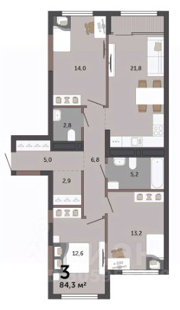 Объект N 194634. Продаётся уютная квартира эргономичной планировки, все комнаты правильной формы- фактически вы приобретаете 2 отдельные комнаты и просторную гостиную с функциональной кухней в доме комфорт класса!