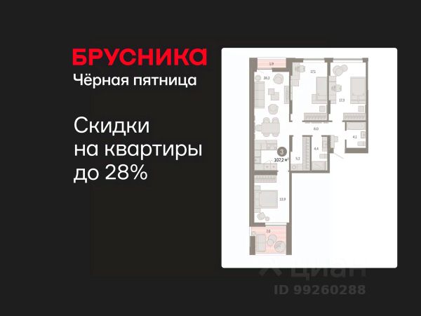 115 968 ₽/м²