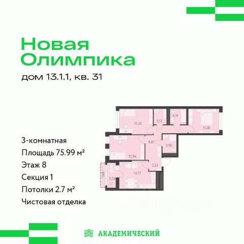 Проект от основателя и главного застройщика Академического района. Расположение и инфраструктура: Квартал "Новая Олимпика" включает десять блоков домов, два детских сада в периметре улиц А. Парина А. Ландау А. Вавилова Матвеева. Сроки строительства квартала: 3 квартал 2024 3 квартал 2030. В числе особых преимуществ уникальная локация: напротив Преображенского парка, рядом с Дворцом Дзюдо и Академией тенниса. Развитая транспортная развязка, включающая трамвайную линию. На территории квартала планируется: видеонаблюдение 24/7, подземный паркинг с доступом на лифте, кладовые, велодорожки, многоуровневое озеленение, workout зоны для уличного фитнеса, детские игровые комплексы. На первых этажах будут располагаться торговые галереи.