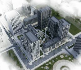 Квартал состоит из четырех 27-этажных домов. В домах — уютные студии, однокомнатные, двухкомнатные, семейные трехкомнатные квартиры. А для ценителей редких форматов квартиры с террасами. Парадный вестибюль с камином и кафе, двор с лаунж-зонами, фонтаном, сенсорным садом, детскими и спортивными площадками внутри.