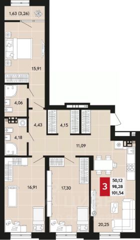 Продается 3-к квартира в жилом комплексе Центральный 5