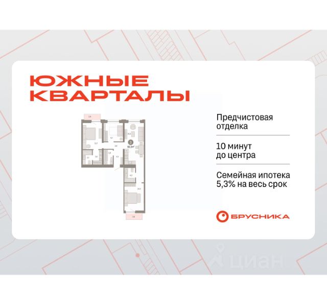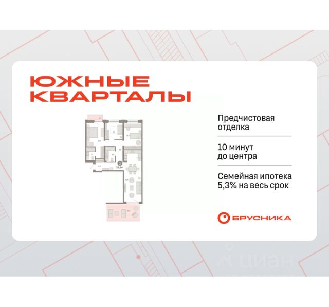 Успейте оформить бронирование, пока действует скидка! Срок предложения ограничен! Стоимость квартиры указана со скидкой, ваша экономия составит 620,000 RUB. Звоните, мы вам все подробно расскажем! Квартира с кухней-гостиной и тремя спальнями в Южных кварталах. Особенности планировки: окна на две стороны, вид во двор, разнесённые спальни, предчистовая отделка, мастер-спальня, постирочная, балкон. квартиры в нашей базе: ЮКВ11-Ж4.3.1. Жилой район "Южные кварталы" расположен в границах улиц Московская, Шаумяна и Фурманова, недалеко от автовокзала. До центра города — 10 минут на автомобиле. До станции метро "Чкаловская" — 15 минут пешком. Рядом находится парк, школа олимпийского резерва, несколько гимназий, лицей, детские сады и городская больница. "Южные кварталы" — проект комплексного редевелопмента территории, разработанный архитекторами Брусники совместно с голландскими бюро. Он разделен на несколько частей, каждая из которых имеет свой характер. Вдоль оживленной Московской появятся более высокие и крупные дома. Профиль спокойной и очень зелёной Шаумяна сформируют кварталы среднеи этажности. В глубине района мы расположим урбан-виллы, чуть дальше — башни-доминанты. Последние будут играть роль визуальных акцентов и впоследствии станут символами этого места. Ближе к Фурманова мы организуем образовательный кластер. Его составят два детских сада на 300 и 325 мест и школа, рассчитанная на 1500 учеников. Школа будет иметь спортивную зону, которая станет доступна и жителям района. Свяжет территорию сеть общественных пространств. Её центральным звеном станет зелёный променад, проходящий сквозь весь район и соединяющий его с парком 50-летия ВЛКСМ. #z4Cfi9