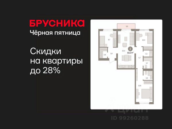 Успейте забронировать на этих условиях! Срок предложения ограничен! Стоимость квартиры указана со скидкой, ваша экономия составит 540,000 RUB. По всем вопросам обращайтесь в офис продаж, мы вам все подробно расскажем! Квартира с кухней-гостиной и тремя спальнями в Южных кварталах. Особенности планировки: предчистовая отделка, мастер-спальня, балкон. квартиры в нашей базе: ЮКВ08-Ж1.2.5. Жилой район "Южные кварталы" расположен в границах улиц Московская, Шаумяна и Фурманова, недалеко от автовокзала. До центра города — 10 минут на автомобиле. До станции метро "Чкаловская" — 15 минут пешком. Рядом находится парк, школа олимпийского резерва, несколько гимназий, лицей, детские сады и городская больница. "Южные кварталы" — проект комплексного редевелопмента территории, разработанный архитекторами Брусники совместно с голландскими бюро. Он разделен на несколько частей, каждая из которых имеет свой характер. Вдоль оживленной Московской появятся более высокие и крупные дома. Профиль спокойной и очень зелёной Шаумяна сформируют кварталы среднеи этажности. В глубине района мы расположим урбан-виллы, чуть дальше — башни-доминанты. Последние будут играть роль визуальных акцентов и впоследствии станут символами этого места. Ближе к Фурманова мы организуем образовательный кластер. Его составят два детских сада на 300 и 325 мест и школа, рассчитанная на 1500 учеников. Школа будет иметь спортивную зону, которая станет доступна и жителям района. Свяжет территорию сеть общественных пространств. Её центральным звеном станет зелёный променад, проходящий сквозь весь район и соединяющий его с парком 50-летия ВЛКСМ. #2Mvc9v