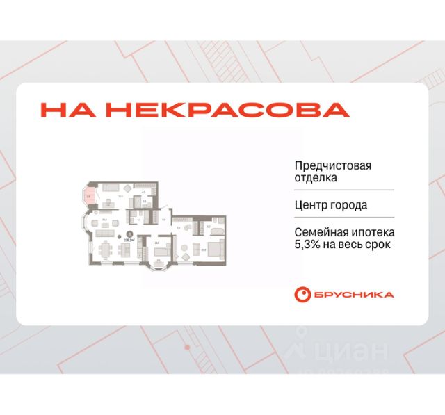 Квартира с кухней-гостиной и тремя спальнями в квартале "На Некрасова". Особенности планировки: второй санузел, лоджия, разнесённые спальни, предчистовая отделка, мастер-спальня, балкон. квартиры в нашей базе: НКР02-Ж2.6.4. Квартал "На Некрасова" состоит из четырёх домов переменной высотности от 7 до 25 этажей с тихими дворами и подземным паркингом. Особенность квартала — общественные пространства и благоустройство нового уровня: городская площадь с фонтаном, центральный пешеходный бульвар, ландшафтный парк, камерные сады и зелёные кровли домов. Из окон квартир открывается вид на Исеть. В квартале спроектированы помещения под магазины, кафе, аптеки и соседский центр. Проект расположен в центре Екатеринбурга в границах улиц Печерская — Некрасова рядом с управлением железной дороги и крупной транспортной магистралью — улицей Челюскинцев. В пешей доступности — школа 208, сквер, санаторий, фитнес-центр с бассейном. В 10 минутах ходьбы находится станция метро "Динамо", Олимпийская набережная, Дворец игровых видов спорта, спортивный комплекс "Динамо" и киноконцертный театр "Космос". Особенность проекта — цепочка связанных общественных пространств. Новая площадь за зданием управления железной дороги переходит в бульвар и сквер. В центре площади — фонтан. На бульваре расположена детская площадка, спортивная зона и беседки-перголы для спокойного отдыха. Вход во двор организован через колоннаду. Планировочно он разделён на две части. Парадный партер с большим количеством стриженых растений, фонтанами, цветущими кустарниками и более "домашняя", уютная зона, где высажены деревья и низкорослые хвойные растения, многолетники. В центре двора — две детские площадки. #Zsoo9z