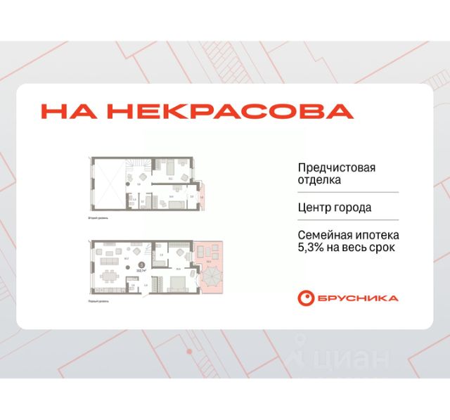 Двухуровневая квартира с кухней-гостиной и тремя спальнями в квартале "На Некрасова". Особенности планировки: второй санузел, двухуровневая, предчистовая отделка. квартиры в нашей базе: НКР02-Ж2.9.2. Квартал "На Некрасова" состоит из четырёх домов переменной высотности от 7 до 25 этажей с тихими дворами и подземным паркингом. Особенность квартала — общественные пространства и благоустройство нового уровня: городская площадь с фонтаном, центральный пешеходный бульвар, ландшафтный парк, камерные сады и зелёные кровли домов. Из окон квартир открывается вид на Исеть. В квартале спроектированы помещения под магазины, кафе, аптеки и соседский центр. Проект расположен в центре Екатеринбурга в границах улиц Печерская — Некрасова рядом с управлением железной дороги и крупной транспортной магистралью — улицей Челюскинцев. В пешей доступности — школа 208, сквер, санаторий, фитнес-центр с бассейном. В 10 минутах ходьбы находится станция метро "Динамо", Олимпийская набережная, Дворец игровых видов спорта, спортивный комплекс "Динамо" и киноконцертный театр "Космос". Особенность проекта — цепочка связанных общественных пространств. Новая площадь за зданием управления железной дороги переходит в бульвар и сквер. В центре площади — фонтан. На бульваре расположена детская площадка, спортивная зона и беседки-перголы для спокойного отдыха. Вход во двор организован через колоннаду. Планировочно он разделён на две части. Парадный партер с большим количеством стриженых растений, фонтанами, цветущими кустарниками и более "домашняя", уютная зона, где высажены деревья и низкорослые хвойные растения, многолетники. В центре двора — две детские площадки. #z5OOVE