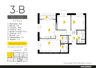 Жилой квартал "Amundsen" - для себя, для семьи, для жизни и развития. Авторская концепция проекта эффектно выделяется в 3 особенностях комплекса: фасады, двор и места общего пользования. AMUNDSEN ПРОЕКТ С ХАРАКТЕРОМ ВЕЛИКОГО ПЕРВООТКРЫВАТЕЛЯ. 4 СЕЗОНА: Двор-трансформер позволяет активно использовать все площадки круглый год. В холодное время года санки, коньки и снежные бои за главную башню. В теплое время источник наполняет двор водой и прохладой. Работают площадки для активных игр и спокойного отдыха. 6 ДЕТСКИХ ПЛОЩАДОК: Мы разделили площадки по возрастным группам для малышей и детей постарше. Качели, аттракционы, водные и активные игры созданы, чтобы познавать мир. 5 ПЛОЩАДОК ДЛЯ СПОКОЙНОГО ОТДЫХА: За счет игры с ландшафтом мы создали приватные зоны, украсили пространство разнотравьем, оживили двор источником. Шум воды, лежаки, беседки, парк места, где ты почувствуешь течение жизни. AMUNDSEN ИДЕАЛЬНОЕ МЕСТО ДЛЯ ЖИЗНИ И РАЗВИТИЯ. - Жилой квартал расположен в экологически чистом районе в окружении двух лесных массивов. - Новые современные школы и детские сады. Спортивный кластер для занятий. - Главный холл пространство для всех. Для самых маленьких игры, для взрослых кафе с ярким дизайном, тихий коворкинг, места для отдыха и светлый, просторный атриум. - Детские площадки "будущего" с оригинальным подходом к созданию игровой среды. - Безопасная территория. Круглосуточная охрана, видеонаблюдение 24/7, электронная система доступа, двор без машин. Застройщик ООО СЗ "Прогресс-Строй", проектная декларация на сайте наш.дом.рф