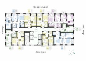 Дом 5 Класс дома: комфорт. Отделка: чистовая (под ключ) включена в стоимость. Скидка при выборе предчистовой отделки. Размер скидки уточняйте в отделе продаж. Вид из окон: на дендропарк и во двор-парк. Б.26 дом на высоте современный жилой комплекс в районе Втузгородок (пересечении улиц Блюхера и Мира). До центра города 20 минут ходьбы. В шаговой доступности находятся: ВУЗы (Уральский федеральный университет, Юридическая академия) Дендрологический парк. школы (Гимназии 35, 47, 108, Лицей 130) детские сады ( 421, 423, 332, 352) остановки общественного транспорта (ул. Мира, ул. Блюхера, ТК Современник). торговые центры (Апельсин, Современник, Галерея 11, Blissco молл) Современная архитектура. Долговечные фасады из навесных панелей и штукатурки, увеличенные окна и французские балконы формируют уникальный узнаваемый образ. Ночная подсветка выделяет дом среди застройки района и подчеркивает выразительность его силуэта. Двор без машин. Игровые площадки для детей разных возрастов, места отдыха и занятий спортом для взрослых не соседствуют с парковкой. Динопарк. Игровые зоны созданы в стиле таинственного мира динозавров. Парк во дворе. Многоуровневое озеленение c прогулочными дорожками, беседками и качелями. 3 уровня безопасности. Контроль доступа по карте жителя, эффективная система видеонаблюдения, консьерж-сервис. Дизайнерские холлы. Парадный холл с остеклением в пол, зонами ожидания, гостевым санузлом и санузлом для мытья лап животным, а также колес велосипедов и колясок. Сервисная компания от застройщика. Обслуживанием дома будет заниматься профессиональная команда. Строительные и технические преимущества. Индивидуальный тепловой пункт: снижает затраты на отопление. Система очистки улучшит качество воды в доме. Пятикамерные окна задержат шумы и холод. Клапан вентиляции позволит проветрить комнату, не устраивая сквозняк. Горизонтальная разводка отопления: трубы спрятаны в полу. Счетчики с телеметрией. Отдельный счетчик на отопление у каждой квартиры. Отведение конденсата для кондиционеров. Высокий уровень шумоизоляции у стены квартир. Бесшумные, скоростные лифты.