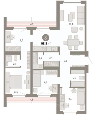 Торопитесь забронировать, пока действует скидка! Предложение ограничено! Стоимость квартиры указана со скидкой, ваша экономия составит 420,000 RUB. По всем вопросам звоните в офис продаж, наши менеджеры вам все расскажут! Квартира с кухней-гостиной и тремя спальнями в Бруснике в Академическом. Особенности планировки: предчистовая отделка, разнесённые спальни, терраса на крыше. квартиры в нашей базе: АКД04-Ж1.9.1. Квартал "Брусника в Академическом" расположен в границах улиц Ландау — Новая. Сегодня Академический — молодой, стремительно развивающийся район, обеспеченный всей необходимой инфраструктурой. С центром его связывают две магистральные улицы — Вильгельма де Геннина и Амундсена. Последняя в перспективе соединится с ЕКАДом, что позволит жителям быстрее выезжать из города. Согласно утвержденному проекту планировки территории в пешеходной доступности от квартала Брусники появятся две школы, рассчитанные на 1700 мест, и шесть детских садов. Рядом со строящимися домами расположены две крупные зелёные зоны — Юго-Западный лесопарк и Преображенский парк. В школах раиона совместно с учеными УрО РАН будет реализован проект "Малая академия наук", предпогагающий регулярные экскурсии в отраслевые институты и лаборатории, участие в научных конференциях и мастер-классах. Также в Академическом уже построены, теннисная академия и дворец дзюдо, крупные ТРЦ "Краснолесье" и ТРЦ "Академический", гипермаркет "Лента", в планах — организация ИT-кластера и новых филиалов НИИ. Камерные дворы квартала закрыты от машин. По нашим стандартам 70% их территории покрывает зелень. Деревья, кустарники и травы подобраны таким образом, чтобы в каждый сезон двор оставался красивым и имел свой цвет. Каждый двор разделён на зоны. В одной расположены детские площадки, в другой — места для спорта и тихого отдыха взрослых. Особенность ландшафта дворов — дождевые сады, снижающие нагрузку на ливневую канализацию. Они впитывают сток с крыш и тротуаров, фильтруют его в специально подобранном субстрате и отправляют в пруд. #2wDwCU