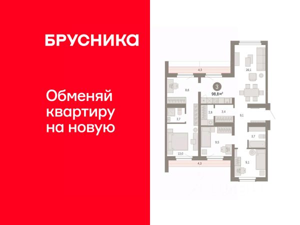 Успейте забронировать по этой цене! Предложение ограничено! Стоимость квартиры указана со скидкой, ваша экономия составит 420,000 RUB. Информация по телефону, мы вам все подробно расскажем! Квартира с кухней-гостиной и тремя спальнями в Бруснике в Академическом. Особенности планировки: предчистовая отделка, разнесённые спальни, терраса на крыше. квартиры в нашей базе: АКД04-Ж1.9.1. Квартал "Брусника в Академическом" расположен в границах улиц Ландау — Новая. Сегодня Академический — молодой, стремительно развивающийся район, обеспеченный всей необходимой инфраструктурой. С центром его связывают две магистральные улицы — Вильгельма де Геннина и Амундсена. Последняя в перспективе соединится с ЕКАДом, что позволит жителям быстрее выезжать из города. Согласно утвержденному проекту планировки территории в пешеходной доступности от квартала Брусники появятся две школы, рассчитанные на 1700 мест, и шесть детских садов. Рядом со строящимися домами расположены две крупные зелёные зоны — Юго-Западный лесопарк и Преображенский парк. В школах раиона совместно с учеными УрО РАН будет реализован проект "Малая академия наук", предпогагающий регулярные экскурсии в отраслевые институты и лаборатории, участие в научных конференциях и мастер-классах. Также в Академическом уже построены, теннисная академия и дворец дзюдо, крупные ТРЦ "Краснолесье" и ТРЦ "Академический", гипермаркет "Лента", в планах — организация ИT-кластера и новых филиалов НИИ. Камерные дворы квартала закрыты от машин. По нашим стандартам 70% их территории покрывает зелень. Деревья, кустарники и травы подобраны таким образом, чтобы в каждый сезон двор оставался красивым и имел свой цвет. Каждый двор разделён на зоны. В одной расположены детские площадки, в другой — места для спорта и тихого отдыха взрослых. Особенность ландшафта дворов — дождевые сады, снижающие нагрузку на ливневую канализацию. Они впитывают сток с крыш и тротуаров, фильтруют его в специально подобранном субстрате и отправляют в пруд. #zWd4C3