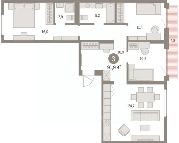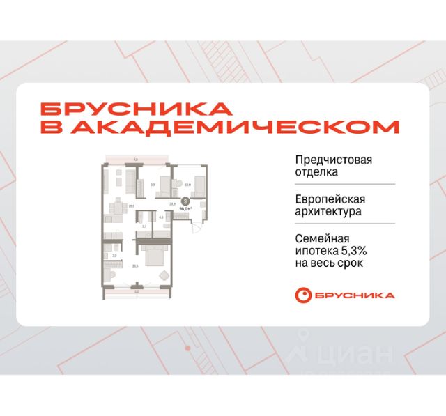 Торопитесь оформить бронирование на этих условиях! Период акции ограничен! Стоимость квартиры указана со скидкой, ваша экономия составит 420,000 RUB. Звоните, мы вам все подробно расскажем! Квартира с кухней-гостиной и тремя спальнями в Бруснике в Академическом. Особенности планировки: окна на две стороны, гардеробная, вид во двор, разнесённые спальни, предчистовая отделка, мастер-спальня, балкон, терраса на крыше. квартиры в нашей базе: АКД05-Ж5.7.1. Квартал "Брусника в Академическом" расположен в границах улиц Ландау — Новая. Сегодня Академический — молодой, стремительно развивающийся район, обеспеченный всей необходимой инфраструктурой. С центром его связывают две магистральные улицы — Вильгельма де Геннина и Амундсена. Последняя в перспективе соединится с ЕКАДом, что позволит жителям быстрее выезжать из города. Согласно утвержденному проекту планировки территории в пешеходной доступности от квартала Брусники появятся две школы, рассчитанные на 1700 мест, и шесть детских садов. Рядом со строящимися домами расположены две крупные зелёные зоны — Юго-Западный лесопарк и Преображенский парк. В школах раиона совместно с учеными УрО РАН будет реализован проект "Малая академия наук", предпогагающий регулярные экскурсии в отраслевые институты и лаборатории, участие в научных конференциях и мастер-классах. Также в Академическом уже построены, теннисная академия и дворец дзюдо, крупные ТРЦ "Краснолесье" и ТРЦ "Академический", гипермаркет "Лента", в планах — организация ИT-кластера и новых филиалов НИИ. Камерные дворы квартала закрыты от машин. По нашим стандартам 70% их территории покрывает зелень. Деревья, кустарники и травы подобраны таким образом, чтобы в каждый сезон двор оставался красивым и имел свой цвет. Каждый двор разделён на зоны. В одной расположены детские площадки, в другой — места для спорта и тихого отдыха взрослых. Особенность ландшафта дворов — дождевые сады, снижающие нагрузку на ливневую канализацию. Они впитывают сток с крыш и тротуаров, фильтруют его в специально подобранном субстрате и отправляют в пруд. #ZSO6B4