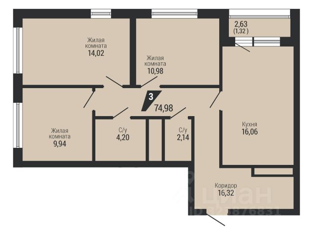 163 854 ₽/м²