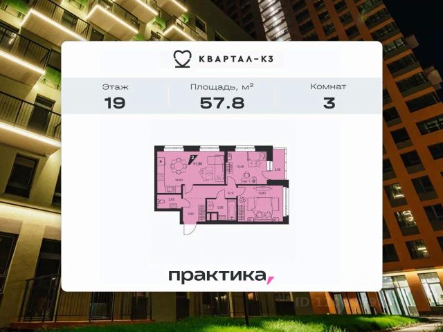 Квартира расположена на 10 этаже 20-этажного дома, общая площадь 72 м2, плюс лоджия с панорамным остеклением. Планировка современная, евротрехкомнатная квартира с большой кухней-гостиной 21 кв. м. и двумя отдельными спальнями, одна из которых мастер спальня со своим большим сан узлом и двумя окнами, также есть еще один общий санузел.