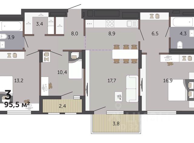 ХОРОШИЕ НОВОСТИ!!! Трёхкомнатная квартира в центре Пионерского района — ваша мечта о комфорте! Планировка и площадь: * Общая площадь: продуманная планировка 103,4 кв.м * Холл: просторный 14,4 кв.м с гардеробной * Зал: 29,9 кв.м с двумя окнами (возможно зонирование) * Детская: 8,1 кв.м * Спальня: 16,2 кв.м * Кухня: 13,7 кв.м с утеплённым балконом 2,77 кв.м * Дополнительное пространство: 11 кв.м для хранения Особенности и удобства: * Два санузла: * С душевой кабиной (3,5 кв.м) * С джакузи и ванной (14,6 кв.м) с окном и тёплым полом * Отделка: * Ламинат во всех комнатах * Обои под покраску * Межкомнатные двери из массива * Коммуникации: * Деревянные стеклопакеты * Недавно заменённые трубы * Кухонный гарнитур остаётся Инфраструктура и расположение: * Транспортная доступность: остановка в 2 минутах * Образовательные учреждения: * Гимназия 35 * Новая школа на Советской с бассейном и стадионом (открытие 01.09.2025) * Социальная инфраструктура: * Детские сады * Магазины: "Перекрёсток", "Магнит", "КБ", "Кировский", "Фикс Прайс", DNS * Пункты выдачи маркетплейсов Преимущества: * Безопасность: закрытый двор с автоматическими воротами * Комфорт: современная детская площадка * Парковка: наземная * Состояние: квартира полностью освобождена * Юридическая чистота: без обременений и залогов * Ключи передаются в день сделки! Записывайтесь на просмотр прямо сейчас! *** Поможем сдать или продать ваш объект недвижимости! Звоните - возможно прямо сейчас у нас есть на нее арендатор/покупатель. ***