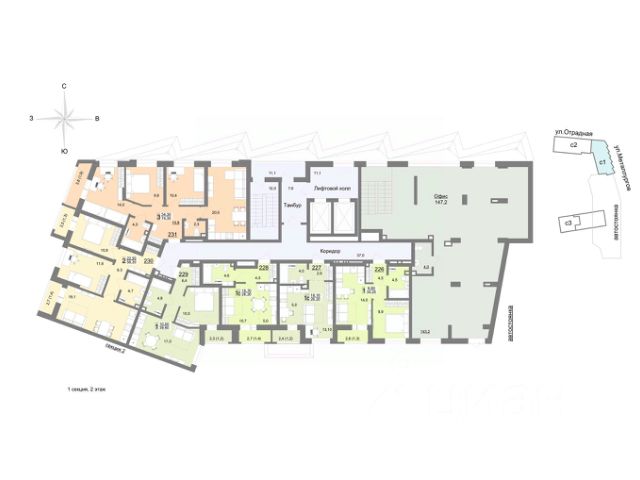 Преимущества проекта Отделка квартир чистовая Переезжайте сразу после получения ключей. Входные и межкомнатные двери с фурнитурой, 5-камерные окна, прочный ламинат 32 класса, обои под покраску, оборудованные сантехникой узлы. В каждой квартире ниши для шкафа или гардеробной. Ограничители на окнах "безопасность детей" Препятствуют возможности полного открытия окон, обеспечивают безопасность детей. Клапан инфильтрации воздуха Круглосуточный приток свежего воздуха без проветривания, защита помещения от насекомых, шума и пыли. Уютные парадные Геометрия линий и цветовая палитра парадных тщательно проработаны архитекторами и воплощены в стильное пространство. Музыка в холлах Легкая фоновая музыка в холлах формирует приятную атмосферу, расслабляет и успокаивает, помогает отвлечься от городской суеты. Увеличенная высота кабины лифта Лифты с увеличенной высотой кабины и пониженным уровнем шума для комфортного перемещения и перевозки крупногабаритных грузов. Детская игровая комната в холле Организовать досуг ребенка можно, не выходя из дома. Игровая в ярких позитивных тонах непременно понравится вашим непоседам. Даже плохая погода не помеха, достаточно спуститься в игровую, где ваш ребенок сможет поиграть, а вы, наблюдая за ним, пообщаться, почитать и просто отдохнуть. Колясочные на первом этаже в каждой секции Удобное место для хранения колясок, велосипедов и самокатов. Прогулочные дорожки на эксплуатируемой кровле-террасе Современная зона отдыха для романтических вечеров или встреч с друзьями. Парковка для велосипедов и электросамокатов во дворе Быстрая и удобная парковка для вело и электротранспорта прямо во дворе. Безопасная организация дорожного передвижения Для безопасного перемещения через крупную автомобильную дорогу будет организован регулируемый перекресток. Закрытый паркинг Не будет сложностей с поиском парковочного места, очисткой от снега или прогревом. Ваш автомобиль будет находится под неустанным контролем и защитой 24/7.
