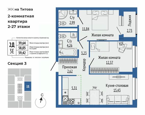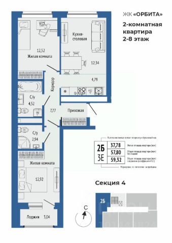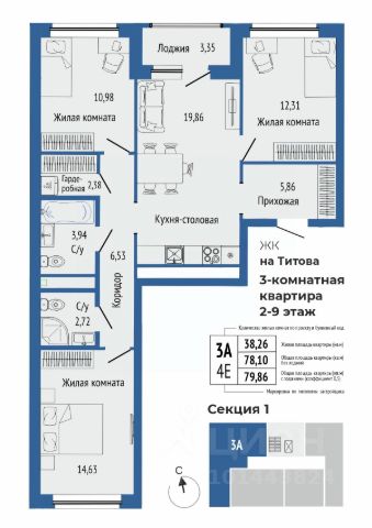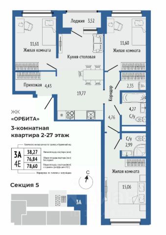 Продается 3-комнатная квартира в ЖК Орбита на Титова.
