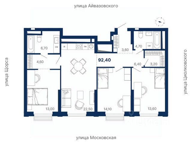 Просторная квартира в "Парке Столиц" — выбор тех, кто ценит личное пространство и качество жизни. Здесь достаточно места для детских игр, уютной родительской спальни, кабинета и гостиной, где собирается вся семья. "Парк Столиц" — современный жилой комплекс бизнес-класса с закрытой территорией, уникальным двором с ручьём и собственной УК. Локация — между ул. Московская, Щорса, Айвазовского и Циолковского, в шаговой доступности от метро Чкаловская. Поблизости школы, сады, магазины, аптеки, медицинские центры. Возможны ипотека, рассрочка, трейд-ин и комбо-покупка.