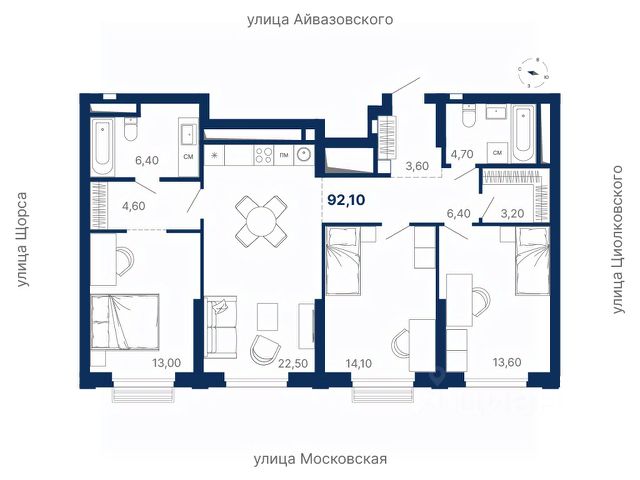 До конца ноября — скидка до 10% при 100% оплате и в ипотеку! Просторная квартира в "Парке Столиц" — выбор тех, кто ценит личное пространство и качество жизни. Здесь достаточно места для детских игр, уютной родительской спальни, кабинета и гостиной, где собирается вся семья. "Парк Столиц" — современный жилой комплекс бизнес-класса с закрытой территорией, уникальным двором с ручьём и собственной УК. Локация — между ул. Московская, Щорса, Айвазовского и Циолковского, в шаговой доступности от метро Чкаловская. Поблизости школы, сады, магазины, аптеки, медицинские центры. Возможны ипотека, рассрочка, трейд-ин и комбо-покупка.