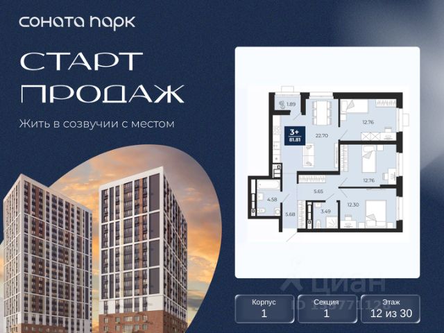 Успейте оформить бронирование по акционной цене, предложение ограничено! Стоимость квартиры указана со скидкой, ваша экономия составит 1,017,275 руб. Информация по телефону, наши менеджеры вам все расскажут. Продается трехкомнатная квартира с предчистовой отделкой в ЖК "Соната Парк" на 2 этаже. Общая площадь: 77.7 кв.м., жилая: 37.52 кв.м., площадь просторной кухни-столовой: 16.79 кв.м. Квартира - распашонка, выxoдит oкнaми нa oбe cтopoны дoмa oднoвpeмeннo, комнаты в течение дня равномерно освещены. В квартире одна лоджия, один совмещенный и один раздельный санузел. Высота потолков 2.72 м. Дом монолитный, трехподъездный, переменной этажности, от 10 до 24 этажей. Квартира находится в 1-й секции высотой 10 этажей в корпусе 2. На этаже 5 квартир. В подъезде 1 пассажирский и 1 грузовой лифт. Окончание строительства - 4 квартал 2028 года. Оформление сделки по договору долевого участия. ЖК "Соната Парк" расположен в новом городском кластере "Аллея Романтиков" на Юго-Западе Екатеринбурга. Это район улиц Волгоградская Советских женщин Шаумяна Амудсена. Аллея объединяет разные кварталы застройщиков этой территории в единое целое. Чистые линии, интеллектуальная элегантность фасадов, игра света и тени это партитура, написанная архитектором. Благоустройство жилого комплекса это синтез искусства и природы. Поющие музыкальные инсталляции и поэтический променад. Оркестр растений: сирень, гортензии и яблони, чья цветущая палитра сменяется в течение года. Жизнь с готовой инфраструктурой Развитая транспортная доступность и социальная среда: уже сегодня рядом с домом детские сады, школы, парковые зоны, супермаркеты и рестораны в шаговой доступности. Технологии безопасности Для спокойствия жителей создана интеллектуальная система безопасности. Круглосуточный визуальный контроль обеспечивают профессиональная служба охраны, постоянно присутствующая на территории, и ситуационный центр. Система видеонаблюдения охватывает каждый уголок комплекса, исключая "слепые" зоны. Чёткое зонирование и навигация дополняют картину полного порядка. Дизайнерские подъезды Стилистика подъездов продолжает концепцию "Соната Парка", вдохновлённого музыкальной симфонией: сдержанный, но при этом впечатляющий дизайн соседствует с удобством и функциональностью. В подъезде вас встречает музыка, создавая особую атмосферу с первых секунд. Светлые и стильные входные группы с панорамным остеклением наполняют пространство светом, добавляя ему современной эстетики и ощущения безопасности. Аллея Романтиков Проект органично вписан в масштабный пешеходный кластер "Аллея Романтиков" — уникальное общегородское пространство, которое уже сегодня называют будущей альтернативой главным прогулочным улицам города. Это многофункциональный бульвар протяжённостью 1 километр, где всё создано для вдохновения и отдыха. Это "зелёное сердце" территории, которое объединит кварталы разных застройщиков в единую гармоничную среду. Здесь будут назначать свидания, гулять с семьёй, вст