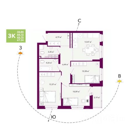 Квартира очень уютная, светлая, тёплая и практичная! Наличие большой кухни-гостиной расширяет функционал квартиры до 4х комнатной, + всегда есть место для семейных посиделок полным составом.