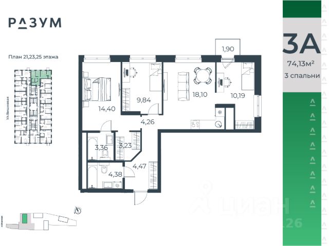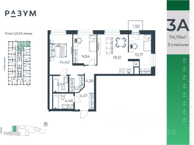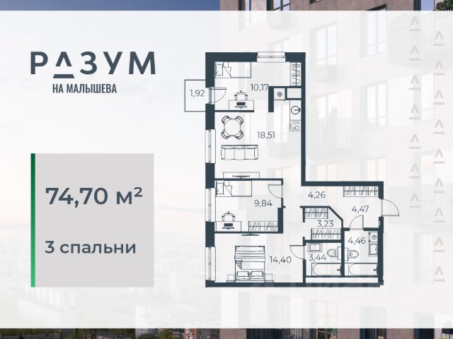 "РАЗУМ на Малышева" — новый проект от федерального девелопера с 12-летним опытом. Квартал расположен в самом сердце Екатеринбурга в Кировском районе. В шаговой доступности: 8 детских садов; 7 школ; прогулочные зоны и парки; магазины; учреждения профессионального образования. "РАЗУМ на Малышева" — это четыре 31-этажных башен на улице Малышева. Дополнительная приватность, безопасность и тишина создаётся за счёт возвышения домов на стилобате. Балконы на фасадах открывают виды на город и во двор, а угловые террасы открывают ещё больше простора и потрясающих видов. Жители квартала "РАЗУМ на Малышева" наслаждаются зелёными зонами круглый год. 60% территории занимает озеленение с деревьями, кустарниками и многолетниками. Здесь прогулки, отдых, работа и встречи с друзьями проходят в уютных зонах с перголами, шезлонгами и гамаками. "РАЗУМ на Малышева" — это: развитая инфраструктура; эргономичные и яркие архитектурные решения; дополнительный уровень спокойствия за счет возвышения на стилобате; во дворе высажены деревья и кустарники с учетом 4 сезонов; многоуровневое освещение; благоустройство; высокий уровень безопасности; стильные гранд-лобби и ресепшн; особые панорамные виды; собственная управляющая компания; собственный детский сад на 150 мест; четырёхэтажный паркинг; соседский центр место развития добрососедства; коммерческие помещения. Эргономичность и удобство в каждом квадратном метре — основа планировочных решений в квартале "РАЗУМ на Малышева". Для каждого сценария жизни найдется планировка: представлены десятки вариантов от 29,92 м² до 84,88 м². Квартиры с террасами размещены на верхних этажах домов. Терраса — это дополнительное пространство для слияния с природой.