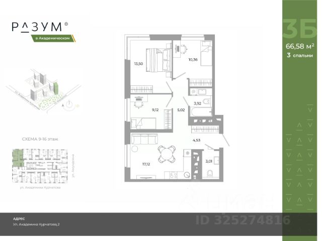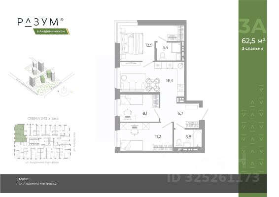 "РАЗУМ в Академическом" — это жилой комплекс из 7 домов переменной этажности от федерального девелопера "РАЗУМ" с 12-летним опытом создания жилых проектов. Дома от 12 до 24 этажей расположены в границах ул. Амундсена. В пешей доступности: - 6 школ; - 10 детских садов; - магазины; - поликлиники; - фитнес-залы. Рядом удобный выезд на ЕКАД. Главная особенность проекта — угловое остекление, которое составляет 22% всей площади. Окна в квартирах установлены в 60 см от пола. Увеличенная площадь остекления помогает снизить затраты на энергоресурсы и создаёт уют в квартире. Сердце жилого комплекса — приватный двор-парк с игровыми комплексами, тренажерами, площадками. "городские грядки" — новое решение благоустройства, где выращиваются ароматные травы или цветы. За пределами комплекса есть прогулочная зона с эко-тропой с вдохновляющими надписями. Прогулки по эко-тропе — это променады наедине с природой. "РАЗУМ в Академическом" — это: - территория без машин; - безбарьерная среда; - единый экостиль в оформлении дворового пространства; - 11 тематических зоны в двор-парке; - многоуровневое освещение и подсветка фасадов; - видеонаблюдение; - гостевой паркинг; - эстетичные подъездные холлы со сквозными подъездами и комфортной зоной ожидания; - Разделенные колясочные и велосипедные зоны; - Велосипедные на 1 этаже; - Кладовые помещения на каждом этаже и на -1 этаже. В проекте 25 планировочных решений: от уютных студий от 21,51 м² до квартир с тремя спальнями и кухней-гостиной до 66,58 м² с функциональным разделением на гостевую и приватные зоны.