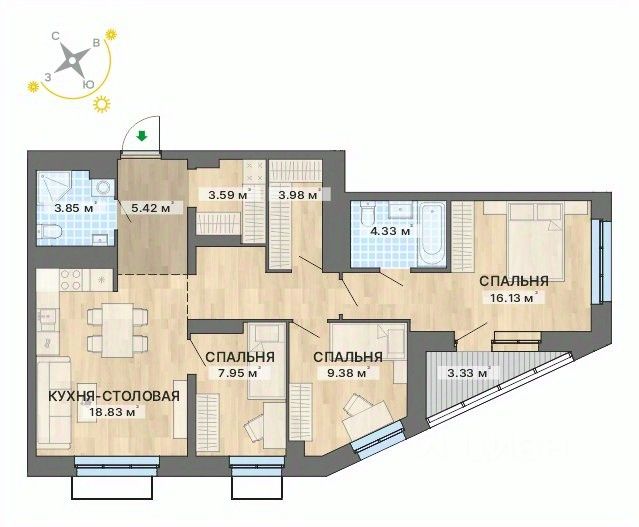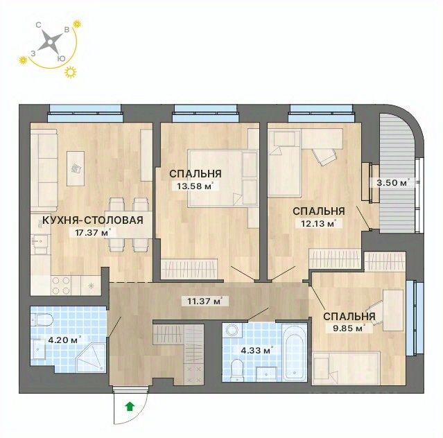 Квартира 79 в подъезде 1. Современные кварталы европейского типа в 5 минутах пешком от метро "Уралмаш". Садик в глубине квартала. Магазины и офисы у дома. Здание с кафе и благоустроенная площадь рядом с ним. Паркинг и уютный закрытый двор. Келлеры для хранения вещей. Планировки разработаны с учётом индивидуальных потребностей, а их площадь на 27% больше, чем в среднем по рынку Екатеринбурга. Множество стандартных эргономичных вариантов квартир, а также квартиры с террасами, антресолями и мастер-спальнями. Квартиры сдаются с чистовой отделкой, предусмотрена возможность дозаказать мебель и кухонную технику. Продам 3-комнатную квартиру 3-комнатных квартир в Северное сияние в Екатеринбурге.
