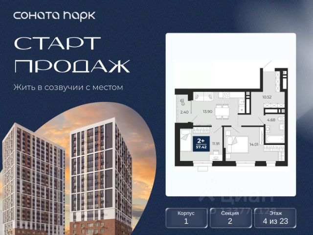 Успейте оформить бронирование по акционной цене! Предложение ограничено! Стоимость квартиры указана со скидкой, ваша экономия составит 1,003,275 RUB. Информация по телефону, мы вам все подробно расскажем! Продается трехкомнатная квартира с предчистовой отделкой в ЖК "Соната Парк" на 2 этаже. Общая площадь: 76.26 кв.м., жилая: 37.5 кв.м., площадь просторной кухни-столовой: 16.79 кв.м. Квартира - распашонка, без проходных комнат, окна выходят на paзные стороны дома. В квартире одна лоджия, один совмещенный и один раздельный санузел. Высота потолков 2.72 м. Дом монолитный, трехподъездный, переменной этажности, от 10 до 24 этажей. Квартира находится в 1-й секции высотой 10 этажей в корпусе 2. На этаже 5 квартир. В подъезде 1 пассажирский и 1 грузовой лифт. Окончание строительства - 4 квартал 2028 года. Оформление сделки по договору долевого участия. ЖК "Соната Парк" расположен в новом городском кластере "Аллея Романтиков" на Юго-Западе Екатеринбурга. Это район улиц Волгоградская Советских женщин Шаумяна Амудсена. Аллея объединяет разные кварталы застройщиков этой территории в единое целое. Чистые линии, интеллектуальная элегантность фасадов, игра света и тени это партитура, написанная архитектором. Благоустройство жилого комплекса это синтез искусства и природы. Поющие музыкальные инсталляции и поэтический променад. Оркестр растений: сирень, гортензии и яблони, чья цветущая палитра сменяется в течение года. Жизнь с готовой инфраструктурой Развитая транспортная доступность и социальная среда: уже сегодня рядом с домом детские сады, школы, парковые зоны, супермаркеты и рестораны в шаговой доступности. Технологии безопасности Для спокойствия жителей создана интеллектуальная система безопасности. Круглосуточный визуальный контроль обеспечивают профессиональная служба охраны, постоянно присутствующая на территории, и ситуационный центр. Система видеонаблюдения охватывает каждый уголок комплекса, исключая "слепые" зоны. Чёткое зонирование и навигация дополняют картину полного порядка. Дизайнерские подъезды Стилистика подъездов продолжает концепцию "Соната Парка", вдохновлённого музыкальной симфонией: сдержанный, но при этом впечатляющий дизайн соседствует с удобством и функциональностью. В подъезде вас встречает музыка, создавая особую атмосферу с первых секунд. Светлые и стильные входные группы с панорамным остеклением наполняют пространство светом, добавляя ему современной эстетики и ощущения безопасности. Аллея Романтиков Проект органично вписан в масштабный пешеходный кластер "Аллея Романтиков" — уникальное общегородское пространство, которое уже сегодня называют будущей альтернативой главным прогулочным улицам города. Это многофункциональный бульвар протяжённостью 1 километр, где всё создано для вдохновения и отдыха. Это "зелёное сердце" территории, которое объединит кварталы разных застройщиков в единую гармоничную среду. Здесь будут назначать свидания, гулять с семьёй, встречаться с друзьями и просто наслажд