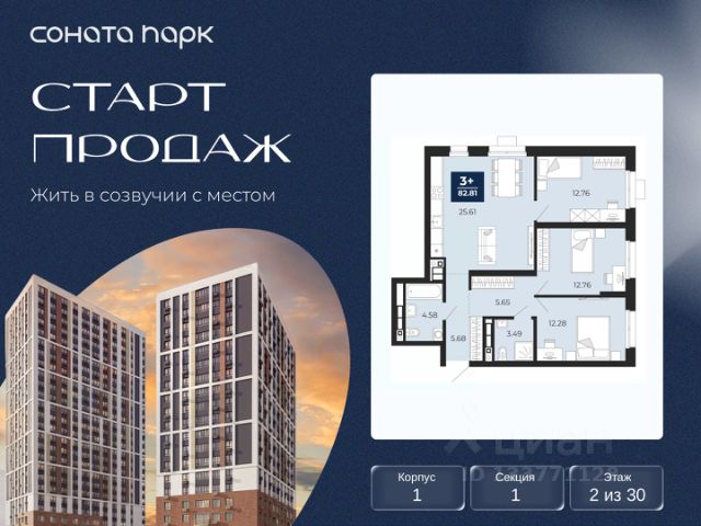Торопитесь забронировать по акционной цене, предложение ограничено! Стоимость квартиры указана со скидкой, ваша экономия составит 1,017,275 руб. По всем вопросам обращайтесь в офис продаж, мы вам все подробно расскажем. Просторная 3-комн. квартира с предчистовой отделкой в ЖК "Соната Парк" на 2 этаже. Общая площадь: 77.7 кв.м., жилая: 37.52 кв.м., площадь просторной кухни-столовой: 16.79 кв.м. Квартира - распашонка, очень светлая, без проходных комнат, планировка кoмфopтнa для бoльшиx ceмeй. В квартире одна лоджия, один совмещенный и один раздельный санузел. Высота потолков 2.72 м. Дом монолитный, трехподъездный, переменной этажности, от 10 до 24 этажей. Квартира находится в 1-й секции высотой 10 этажей в корпусе 2. На этаже 5 квартир. В подъезде 1 пассажирский и 1 грузовой лифт. Окончание строительства - 4 квартал 2028 года. Оформление сделки по договору долевого участия. ЖК "Соната Парк" расположен в новом городском кластере "Аллея Романтиков" на Юго-Западе Екатеринбурга. Это район улиц Волгоградская Советских женщин Шаумяна Амудсена. Аллея объединяет разные кварталы застройщиков этой территории в единое целое. Чистые линии, интеллектуальная элегантность фасадов, игра света и тени это партитура, написанная архитектором. Благоустройство жилого комплекса это синтез искусства и природы. Поющие музыкальные инсталляции и поэтический променад. Оркестр растений: сирень, гортензии и яблони, чья цветущая палитра сменяется в течение года. Жизнь с готовой инфраструктурой Развитая транспортная доступность и социальная среда: уже сегодня рядом с домом детские сады, школы, парковые зоны, супермаркеты и рестораны в шаговой доступности. Технологии безопасности Для спокойствия жителей создана интеллектуальная система безопасности. Круглосуточный визуальный контроль обеспечивают профессиональная служба охраны, постоянно присутствующая на территории, и ситуационный центр. Система видеонаблюдения охватывает каждый уголок комплекса, исключая "слепые" зоны. Чёткое зонирование и навигация дополняют картину полного порядка. Дизайнерские подъезды Стилистика подъездов продолжает концепцию "Соната Парка", вдохновлённого музыкальной симфонией: сдержанный, но при этом впечатляющий дизайн соседствует с удобством и функциональностью. В подъезде вас встречает музыка, создавая особую атмосферу с первых секунд. Светлые и стильные входные группы с панорамным остеклением наполняют пространство светом, добавляя ему современной эстетики и ощущения безопасности. Аллея Романтиков Проект органично вписан в масштабный пешеходный кластер "Аллея Романтиков" — уникальное общегородское пространство, которое уже сегодня называют будущей альтернативой главным прогулочным улицам города. Это многофункциональный бульвар протяжённостью 1 километр, где всё создано для вдохновения и отдыха. Это "зелёное сердце" территории, которое объединит кварталы разных застройщиков в единую гармоничную среду. Здесь будут назначать свидания, гулять с семьёй, встречаться