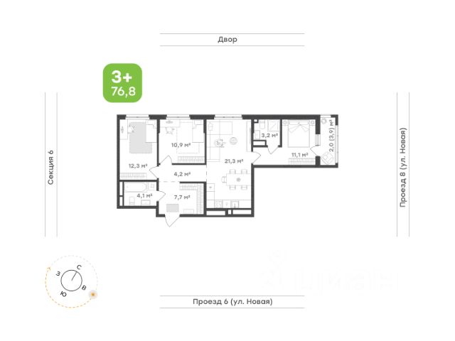 Просторная, светлая квартира, где каждый член семьи найдёт себе место Мастер-спальня 12,3 м² — уединённое пространство с личным санузлом 3,5 м², удобным местом для хранения и выходом на панорамную лоджию. Здесь можно просыпаться с видом на аллею, наслаждаясь утренним светом и свежим воздухом Мастер-спальня отделена от жилой зоны просторной кухней-гостиной 20,2 м² — центра квартиры, где удобно собираться всей семьёй по вечерам, устраивать ужины и тёплые посиделки с друзьями. Открытое пространство создаёт ощущение свободы и лёгкости Две спальни 14,3 м² и 12,9 м² подойдут для детей, гостей или рабочего кабинета. Светлые, просторные и уютные — они легко адаптируются под любые задачи Коридор 5,5 м² связывает все комнаты, обеспечивая удобную навигацию и создавая ощущение целостности пространства Прихожая 8,9 м² — вместительная и продуманная. Здесь предусмотрено удобное место для хранения, которое поможет избежать загромождённости и сохранить порядок Санузел 5,3 м² с ванной и выделенным местом под стиральную машину
