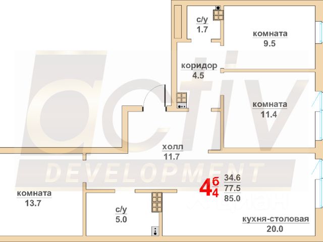 ЖК Свой Дом, 1 очередь, 4 подъезд, Квартира 195