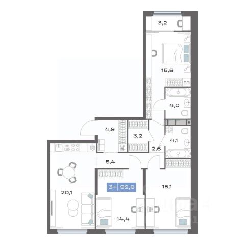 Общая площадь - 59,29 м2