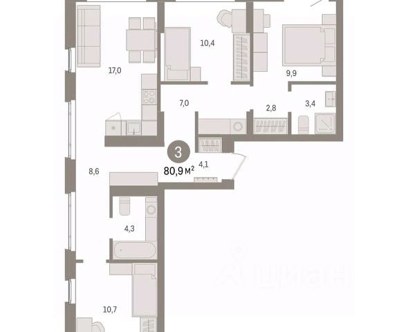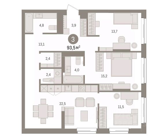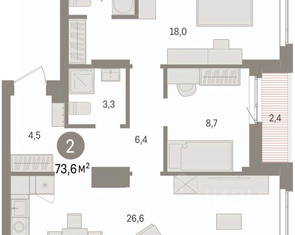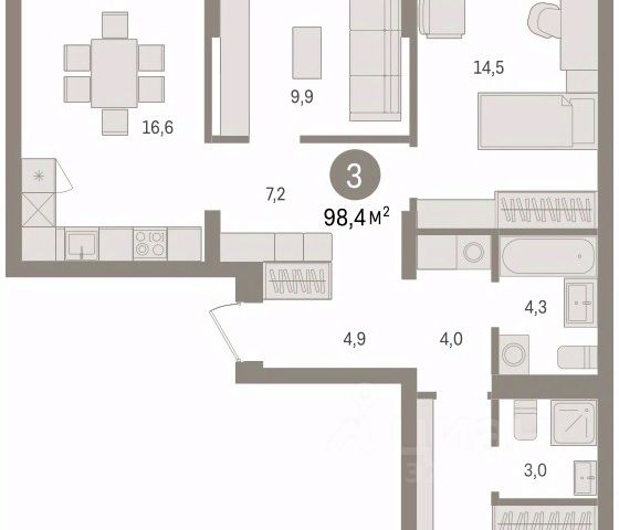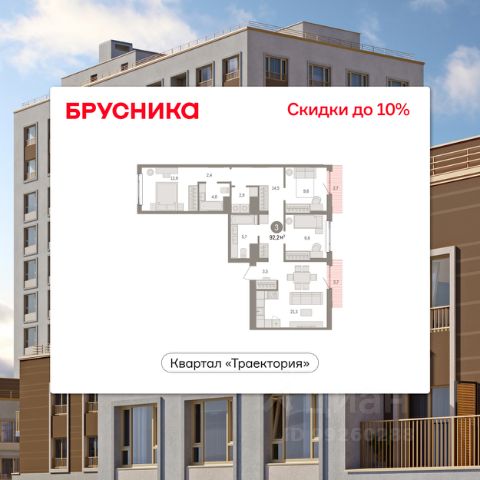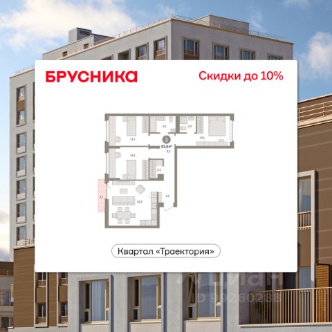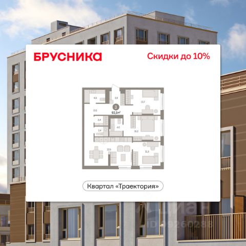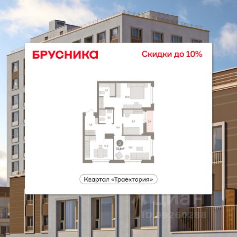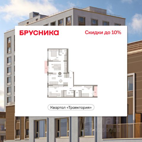 Спешите забронировать, пока действует скидка, предложение ограничено! Стоимость квартиры указана со скидкой, ваша экономия составит 350,000 руб. Звоните, наши менеджеры вам все расскажут. Просторная 3-комн. квартира с европланировкой и предчистовой отделкой в ЖК "Квартал Траектория" на 9 этаже. Общая площадь: 73.6 кв.м., жилая: 43.3 кв.м., общая площадь гостиной-столовой с кухонной зоной: 26.6 кв.м. Европейская планировка, площадь комнат позволяет разместить в них все необходимое, а в просторной кухне-гостиной удобно как готовить, так и отдыхать. Комнаты изолированные, все окна выходят на одну сторону. В квартире одна лоджия, два совмещенных санузла. Высота потолков 2.82 м. Дом монолитный, многоподъездный, переменной этажности, от 7 до 16 этажей. Квартира находится в 4-й секции высотой 16 этажей в корпусе 1-2. На этаже 7 квартир. В подъезде 1 пассажирский и 1 грузовой лифт. Начало строительства - 4 квартал 2025 года. Окончание строительства - 4 квартал 2027 года. Оформление сделки по договору долевого участия. Квартира с кухней-гостиной и тремя спальнями в квартале "Траектория". Особенности планировки: лоджия, мастер-спальня, предчистовая отделка, разнесённые спальни. квартиры в нашей базе: МНВ01-Ж12.9.5. Квартал "Траектория" строится в границах улиц Билимбаевской, Расточной, Монтажников и Маневровой Раньше здесь находился оборонный завод 5-ЦАРЗ, основанный в 1945 году. После войны он ремонтировал военную и грузовую технику — от "Виллисов" и "Студебекеров" до советских ЗИС-5 и ГАЗ-67. Сортировка — район с развитой инфраструктурой, обжитыми жилыми кварталами разных эпох и большим количеством парков. До центра Екатеринбурга — 20 минут на машине. Туда же можно отправиться на автобусе: ближайшая остановка общественного транспорта — в 4 минутах от "Траектории". Рядом с "Траекторией" расположены магазины, торговый центр, детские сады, школы, поликлиники и полезные сервисы, а также другой проект Брусники — квартал "Депо". Если хочется развлечений, можно отправиться в ТРЦ "Карнавал" и парк с аттракционами "Таганская слобода" — дорога туда займёт не более 10 минут на машине. Квартал "Траектория" — первый этап комплексного развития территории, которую раньше занимали производственные здания. На месте бывших цехов Брусника создаст дружелюбную среду и комфортное пешеходное пространство для всего района. Для озеленения квартала мы подобрали больше 60 видов растений: ольху, липу, клён, иву, грушу, вишню, сирень, барбарис, гортензию, смородину, ирис, декоративные травы. Они цветут в разное время года и постоянно меняют настроение двора. В "Траектории" мы предусмотрели несколько общественных пространств, открытых для всех горожан: встречающий сквер, лесопарк у храма и событийный сквер между домами. Когда захочется тишины и уединения, можно устроить прогулку во внутренних дворах: в них нет машин и посторонних, зато много зелени, света и мест для отдыха. Каждый двор в квартале "Траектория" — продолжение квартиры, только под открытым небом