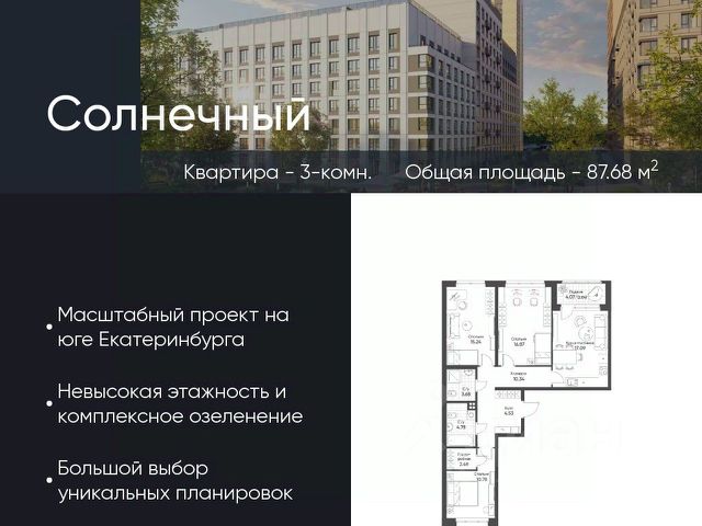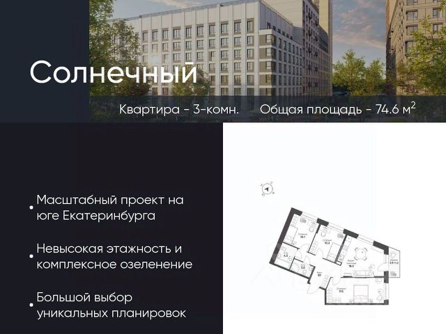 6.2 Солнечный, 16 этаж и 16. Современный новый район, комфорт класса с грамотной инфраструктурой. Концепция района - безопасные закрытие, зеленые дворы-парки. На районе две действующие школы 215 Созвездие и Губернаторский лицей, 4 детский садика, больница, спортивные кластеры (ледовая арена Автомобилист, Художественная гимнастика), Торговый центр, магазины, аптеки. Отделка под чистовую, окна на закат, два санузла- можно сделать мастер спальню.Дизайнерские подъезды. Код пользователя: 31432 Номер в базе: 9308400