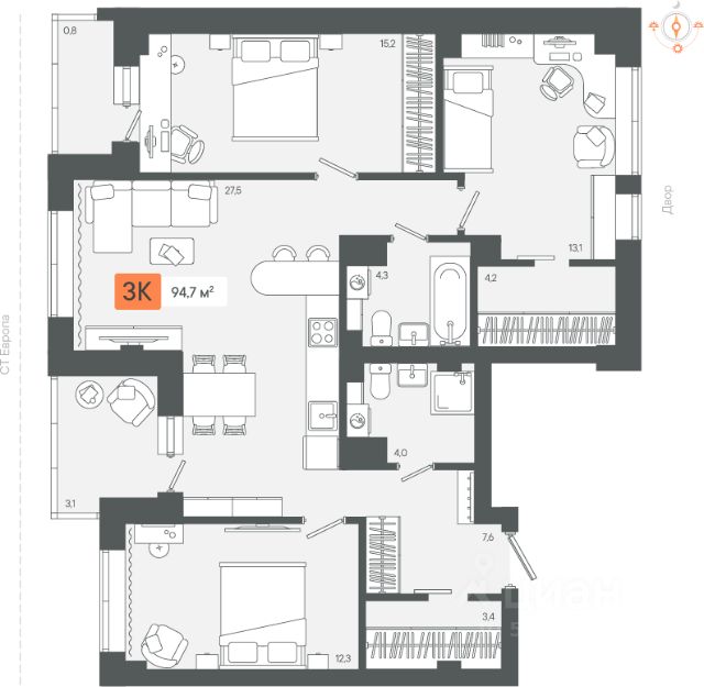 Продаётся 4-комнатная квартира в сданном доме (Белинского, 40), срок сдачи: IV-кв. 2022, общей площадью 79.5 кв.м., на 9 этаже. Новый жилой комплекс "Белинский" от застройщика "СЗ Смарт Билдинг" расположен по адресу: Свердловская область, Сухой Лог, улица Белинского, 40.