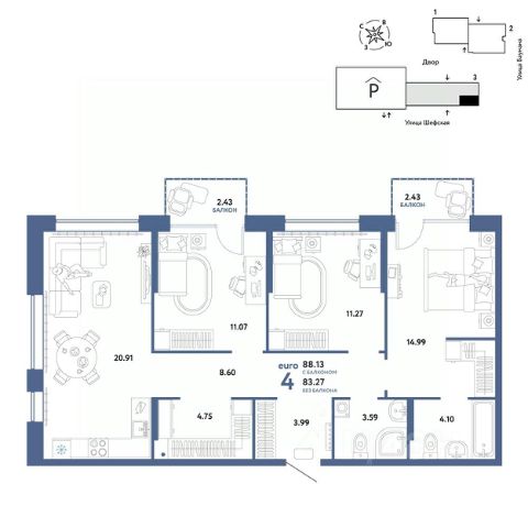 Уютная и крайне редкой планировки трёшка 81,5 м в Академическом!