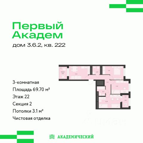 Академический привлекает своей новизной, современной инфраструктурой и доступностью, поэтому в "Добром" найдётся своя планировка для каждого. Квартира будет сдаваться с улучшенной отделкой: качественная входные и межкомнатные двери, с установленной фурнитурой, пластиковые окна со скрытыми петлями, прочный ламинат, обои под покраску