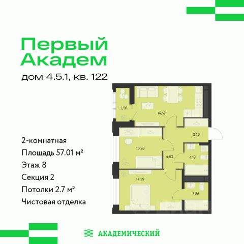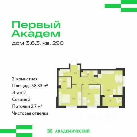 Академический привлекает своей новизной, современной инфраструктурой и доступностью, поэтому в "Добром" найдётся своя планировка для каждого. Квартира будет сдаваться с улучшенной отделкой: качественная входные и межкомнатные двери, с установленной фурнитурой, пластиковые окна со скрытыми петлями, прочный ламинат, обои под покраску