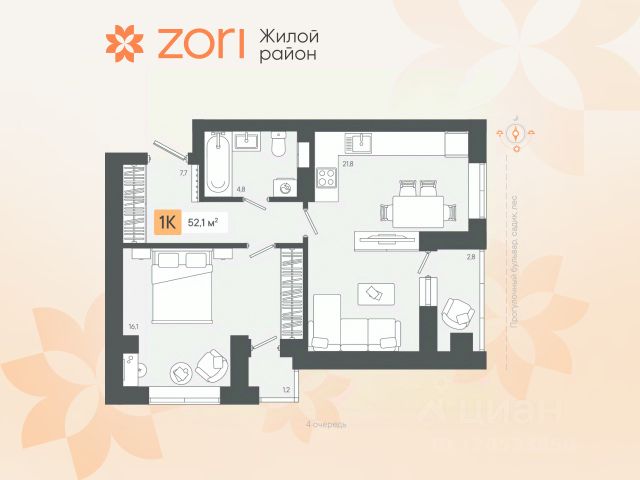 Добро пожаловать в ЖК ZORI — новый жилой район, входящий в Екатеринбургскую агломерацию, расположен в 20 минутах от УРФУ и в 5 минутах от Березовского. Здесь городской комфорт сочетается со спокойствием природы, создавая идеальное пространство для счастливой жизни. Проект реализуется поэтапно: ввод в эксплуатацию первой очереди запланирован на начало 2026 года, а завершение строительства всего проекта намечено на 2027 год. Участок площадью 20 гектаров включает современную инфраструктуру, низкую плотность застройки и просторные дворы. Прилегающий сосновый лес с прогулочными тропами, лыжной трассой (в летнее время — велосипедной дорожкой) делает район идеальным местом для активного отдыха на свежем воздухе. На территории района предусмотрено всё необходимое для комфортной жизни: торговый центр с магазинами, кафе и фитнес-залом, детские образовательные и дошкольные учреждения. На первых этажах домов — продуктовые магазины, аптеки, пекарни и пункты выдачи заказов. Всё это — в шаговой доступности. Первая очередь состоит из 4 домов по 6-8 этажей, окружающих просторный двор площадью 1 Га. Здесь размещены воркаут-комплекс, детские площадки по возрастам, стритбольная площадка, полоса препятствий, многочисленные зоны отдыха и амфитеатр под открытым небом. Парковка наземная, за пределами двора. Передача ключей — I квартал 2026 года. Вторая очередь включает 2 дома по 8 этажей и 3 тематических двора с общим доступом, расположенных на стилобате. Во дворах оборудованы детские площадки по возрастам, зоны отдыха, рабочие пространства на свежем воздухе, спортивные площадки, тихая зона с ленивым ручьем. В подземном паркинге предусмотрены кладовые. Передача ключей — I квартал 2027 года. Третья очередь состоит из 2 домов по 8 этажей с двором на стилобате. Внутри двора расположены детские площадки, зоны для спорта и отдыха, уникальная игровая квартира на свежем воздухе. Также предусмотрен закрытый теплый паркинг с кладовыми. Передача ключей — IV квартал 2026 года. Чувство домашнего комфорта возникает уже в холле: безбарьерная среда, теплые тамбуры, умные домофоны, мягкие зоны ожидания, скоростные лифты. Для удобства жителей предусмотрены колясочные и велосипедные комнаты с доступом по смарт-карте. Квартиры сдаются с отделкой "под чистовую" или с готовым ремонтом от застройщика по проектам "эко-светлый", "эко-темный" и "эко-лайт". Смарт-планировки включают мастер-спальни, гардеробные и теплые лоджии с панорамным остеклением. В каждой квартире установлена система телеметрии для автоматического учёта коммунальных услуг. Комфортный выезд из района предусмотрен как в сторону Березовского, так и в сторону Екатеринбурга, со стороны ЖБИ. Есть выезд на ЕКАД, что позволяет быстро добраться до любой точки города. После сдачи первой очереди начнет курсировать маршрутный автобус до Березовского и до площади Кирова (перед УрФУ). Жилой район ZORI — новый город здоровой и счастливой жизни для вас и вашей семьи!